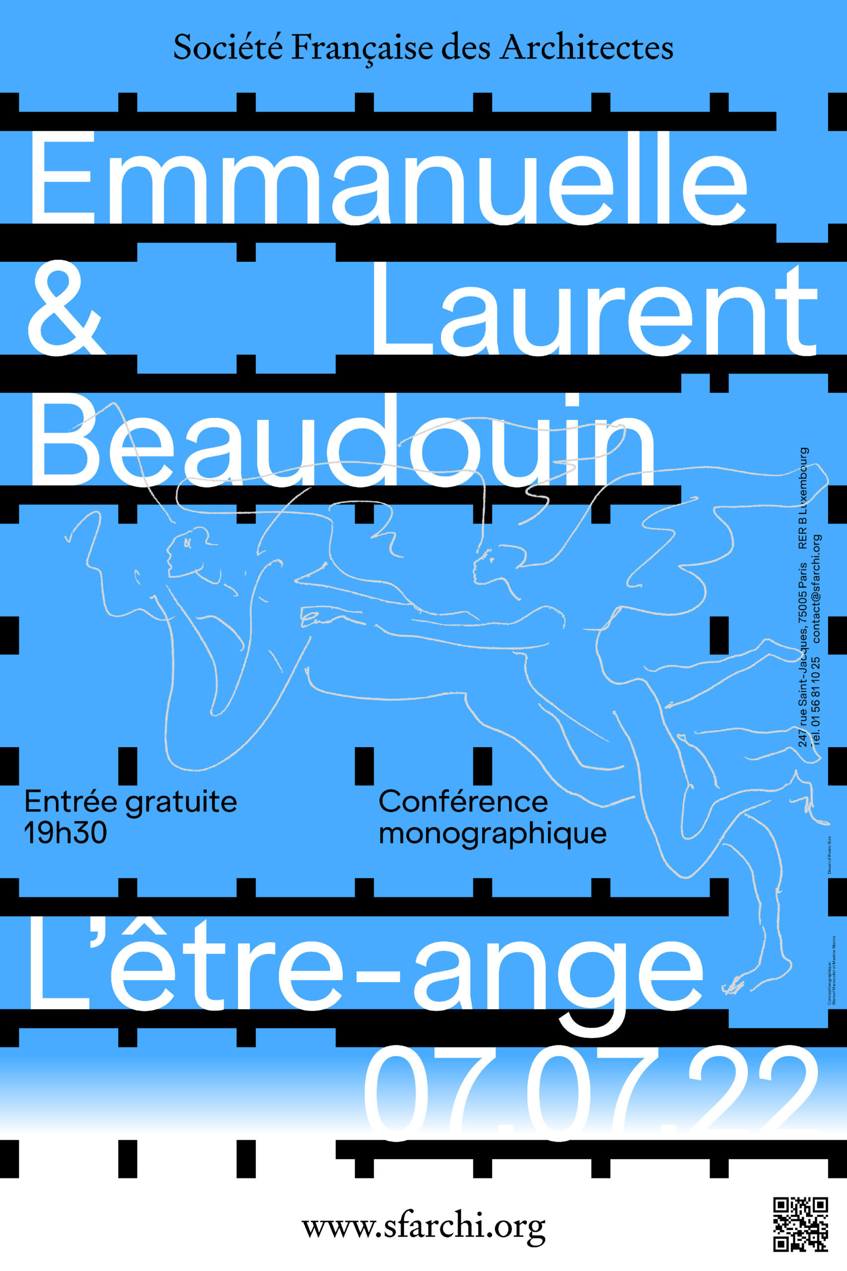 ■ Emmanuelle & Laurent Beaudouin juillet 7, 2022 Cecile L’Etre-ange En évoquant le titre de cette conférence auprès d’un ami philosophe, il m’a dit : « c’est intéressant mais quel est le rapport avec l’architecture ? ». J’ai compris que je me suis laissé piéger par le plaisir des mots aux sens multiples. Effectivement, cela n’a rien à voir avec ce que l’on attend d’une conférence, et je m’en excuse. Il va falloir trouver une explication à ce jeu de mots, et je n’aime pas les explications. Je me souviens de John Hejduk évoquant les anges, il en dessinait et réfléchissait à leur représentation en s’intéressant particulièrement à la transition entre la peau et les plumes, ce passage délicat où la peau se transforme en duvet. Les anges de ses dessins étaient présents dans l’étrange communauté qui habitait ses bâtiments. John Hejduk avait une grande connaissance de la littérature et du théâtre, il aimait en parler. Dans ses dessins et ses textes, il évoquait des rapports humains où se déroulaient parfois des drames ou des rites étranges. Ses « masques » – c’est ainsi qu’il nommait ses projets – étaient des scènes de théâtre, ses bâtiments des représentations symboliques de la tragédie humaine. On y trouve pêle-mêle, les Voûtes, des Images Mortes, des Chambres de Deuil, la Tour de la Trahison, celle des Sectes Révélées, la tombe d’Abel ou les Jardins de la Mort. Ses projets sont aussi des récits où ses anges étaient souvent déchus et quelquefois crucifiés. John Hejduk disait : « l’architecture est ce qui touche l’esprit, ce qui ne touche pas l’esprit est la construction ». Alvaro Siza est aussi un dessinateur d’anges, les siens survolent les villes comme s’ils les regardaient du ciel, avec bienveillance. Ses anges semblent flotter sans peser, ils regardent sans intervenir, ils sont contemplatifs. Ils sont à la fois les spectateurs et peut-être les inventeurs d’un monde qui se dessine sous leurs yeux. Ils semblent être détachés et impartiaux. Ils ne représentent ni le bien ni le mal, ils sont à l’écoute d’un monde en train de se faire. Ils sont étranges et étrangers, ils regardent la scène à distance. Pourtant les anges de Siza ne sont pas les annonciateurs d’un monde à venir, et encore moins les gardiens. Ils en sont les architectes muets.